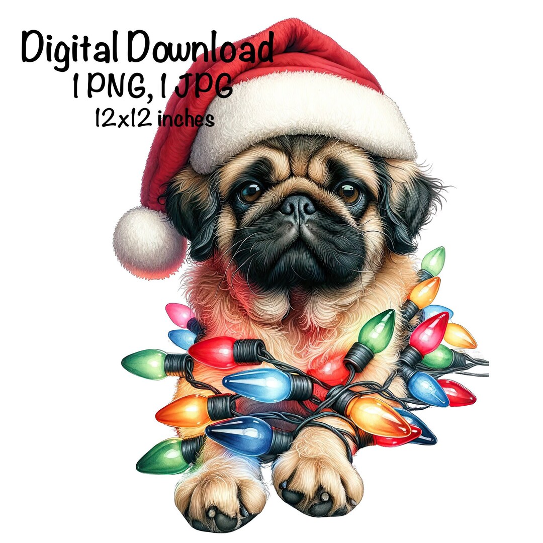 Christmas Pugapoo Puppy PNG Christmas Lights Santa Pug and Poodle Dog ...