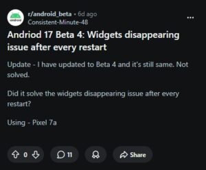 Google Pixel issue with disappearing widgets persists in Android 17 ...