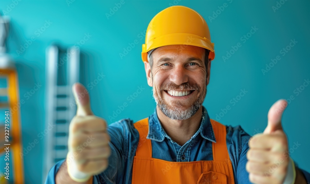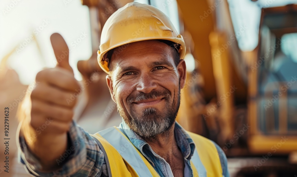 Smiling Builder Giving Thumbs Up to the Camera on Construction Site ...