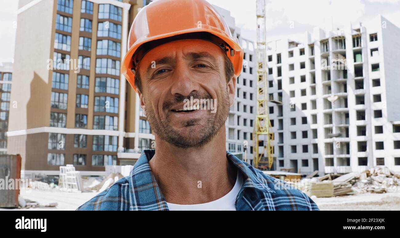 a happy builder smiling at the camera Stock Photo - Alamy