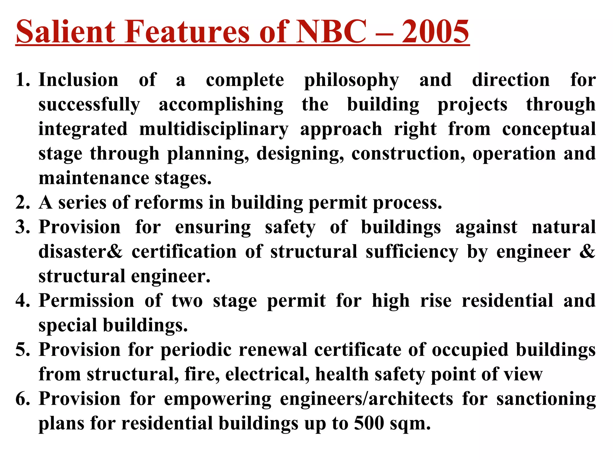 PPT - VARIOUS CODES FOR BUILDING CONSTRUCTION: PROVISIONS OF NBC By (R ...