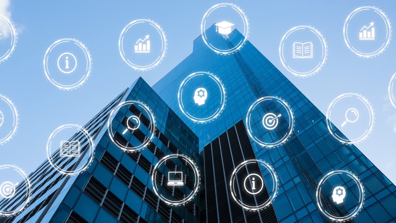 Animation Data Processing Over Modern Building Stock Footage Video (100 ...