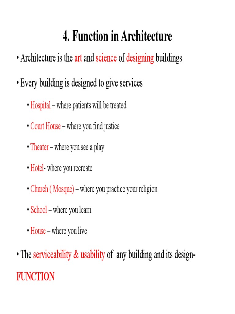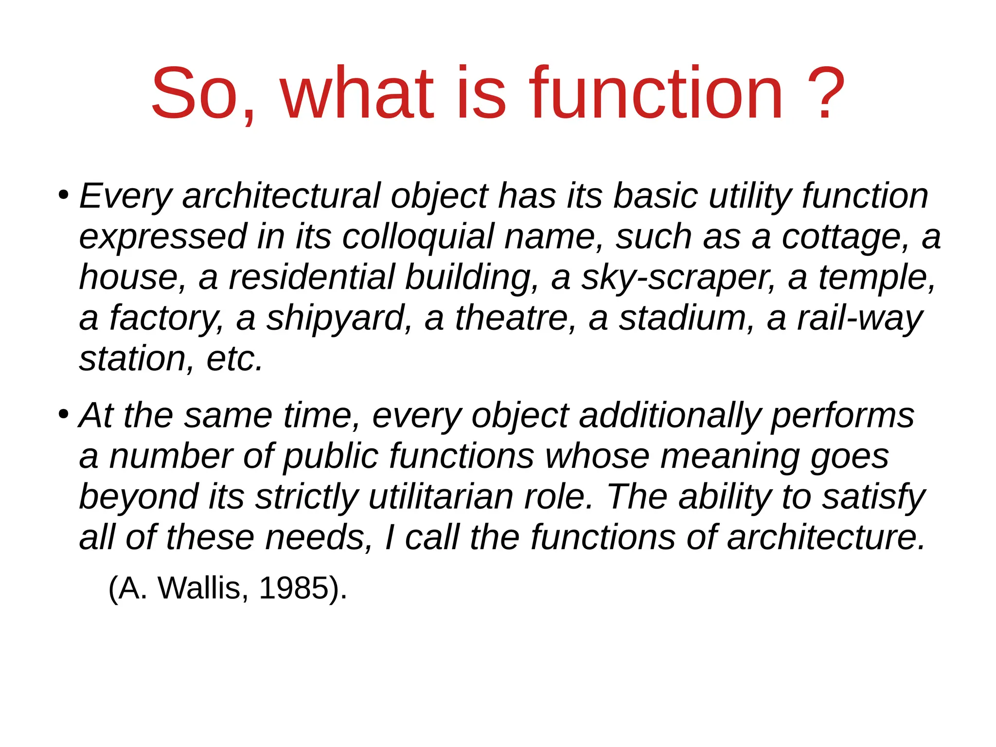 Functions in architecture. Lecture to 1st year students in Architecture ...