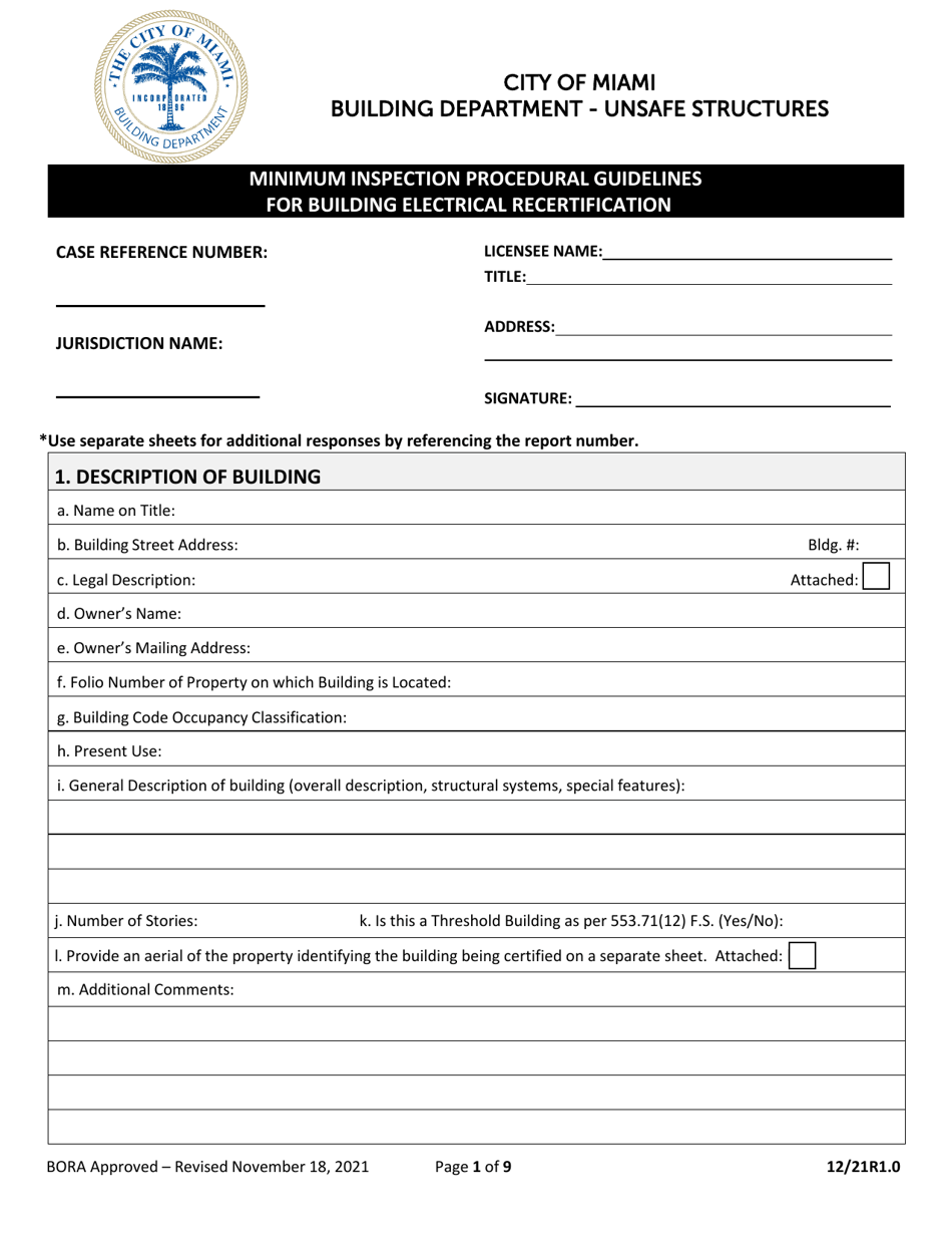City of Miami, Florida Minimum Inspection Procedural Guidelines for ...