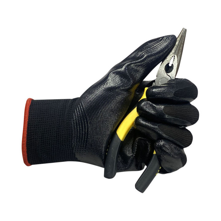Black Polyester Nylon Nitrile Coated Construction Work Gloves Safety ...