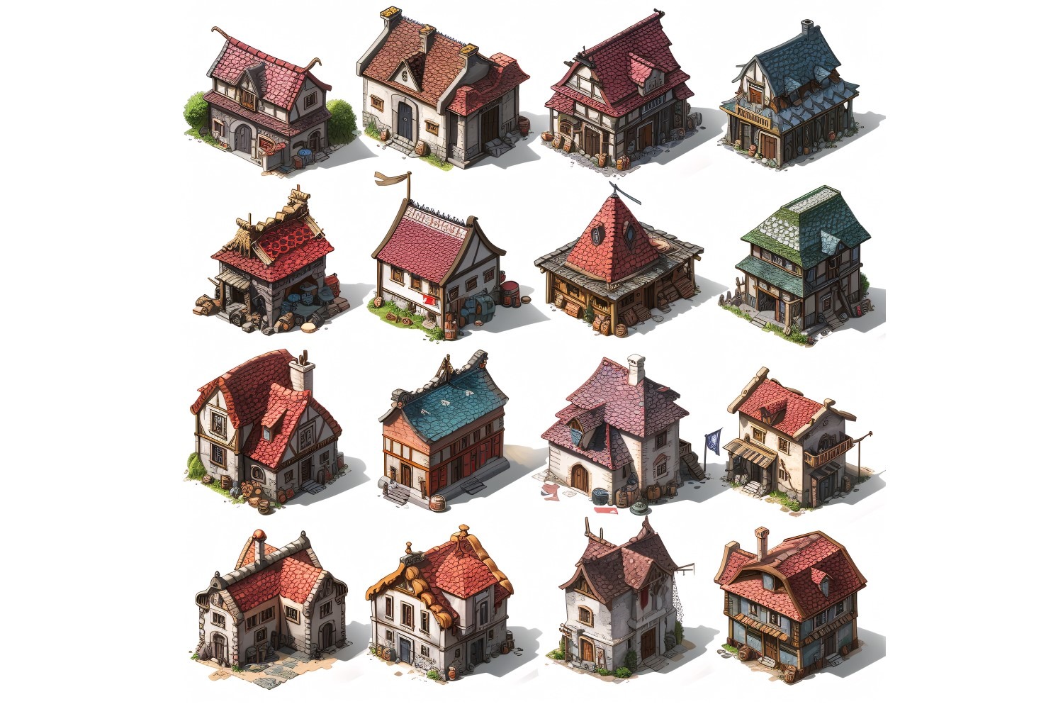 Village Buildings Set - isometric building sprites - Super Game Asset