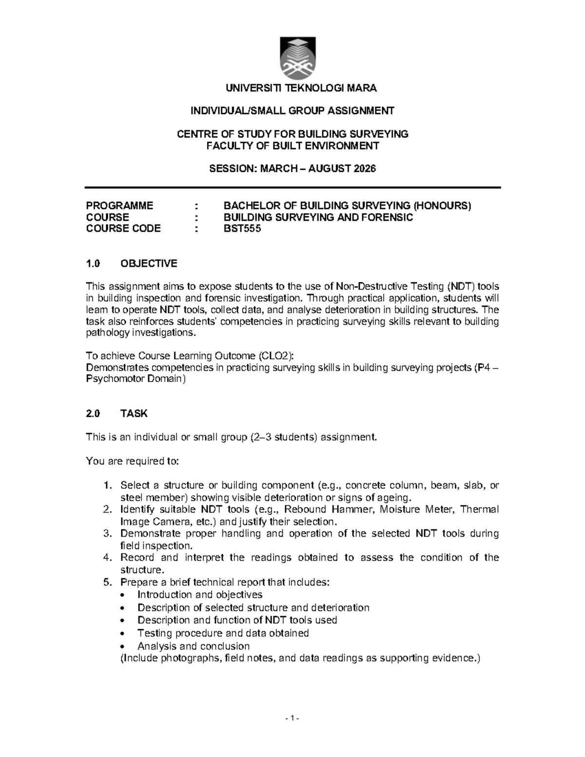BST555 Building Surveying NDT Tools Assignment 2026 - Studocu