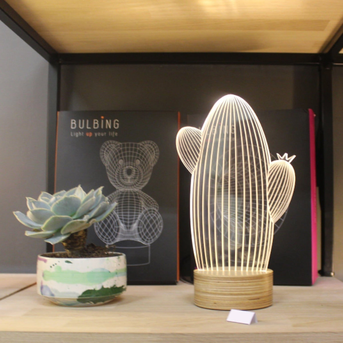 CACTUS BULBING Optical Illusion 2D To 3D Table Lamp, Eco Friendly LED ...