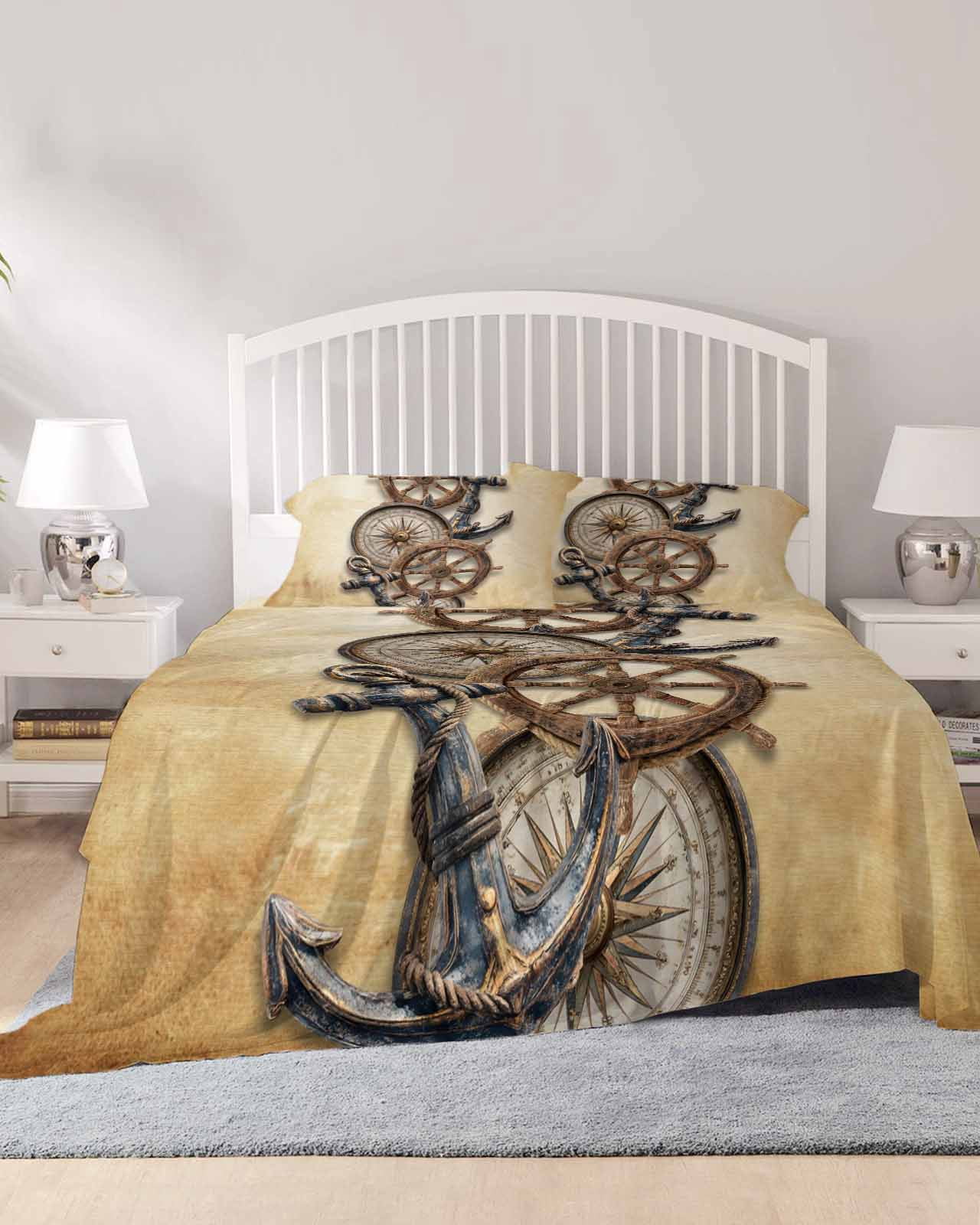 4 Piece King Sheet Set Vintage Anchor Nautical Sheets Set for King Size ...