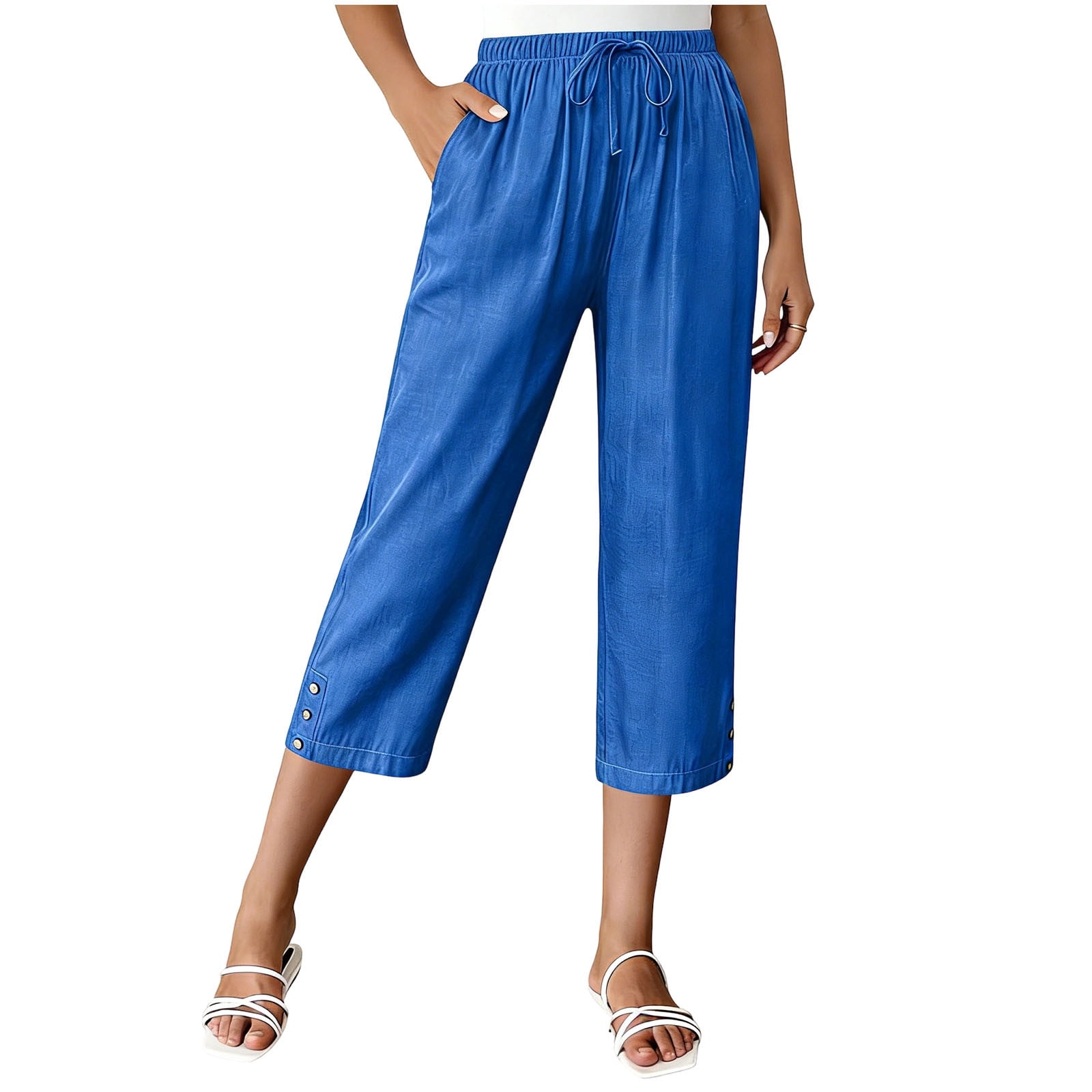 AherBiu Capri Pants for Women Drawstring Elastic High Waisted Straight ...