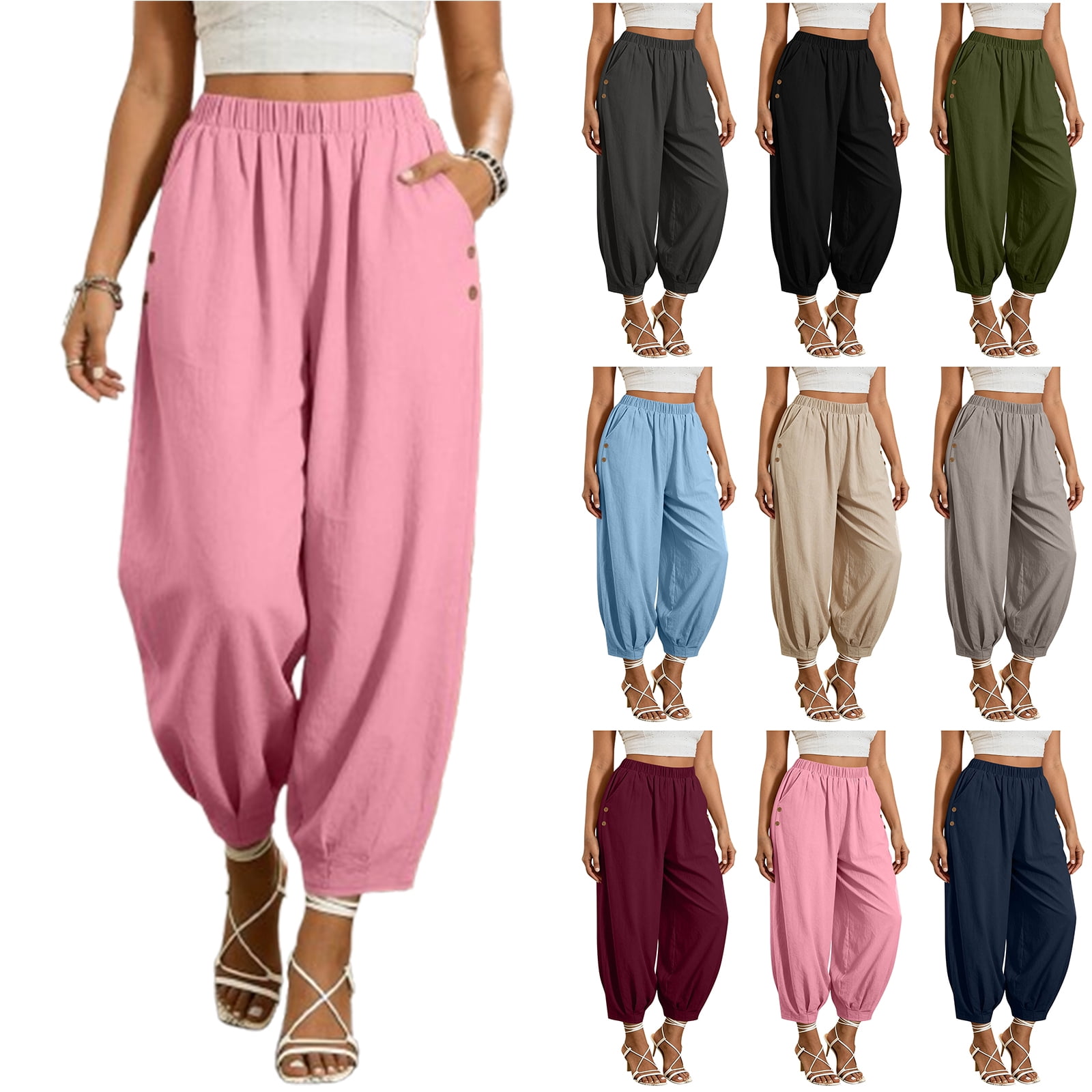 Bloomae Women's High Waist Linen Loose Pants Trendy Oversized Baggy ...