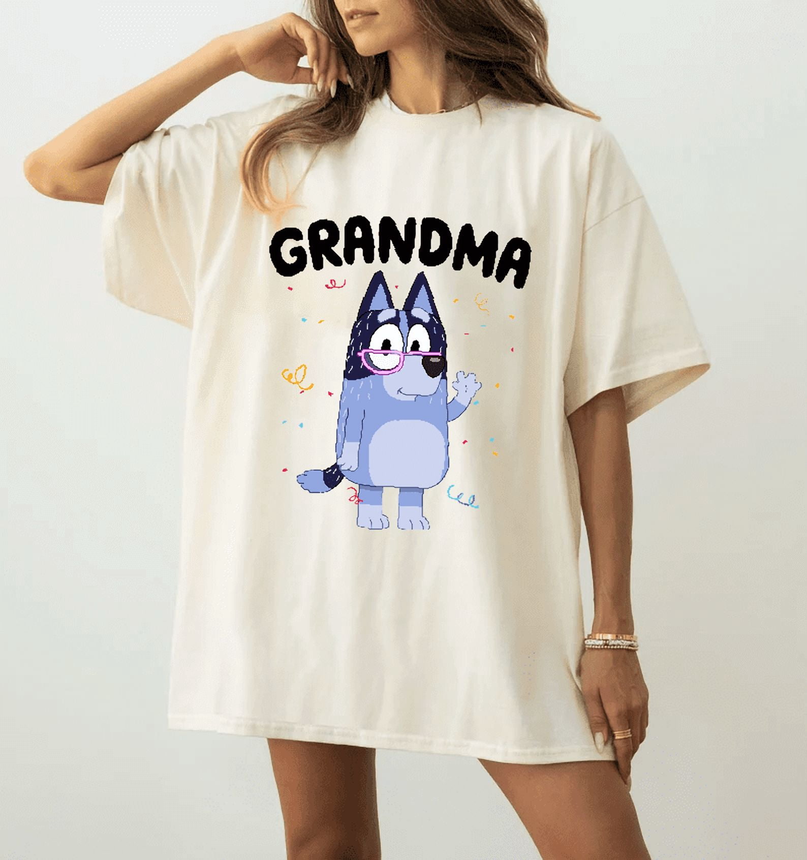 Bluey Grandma Character Black T-Shirt Cute Cartoon Grandmother Dog All ...