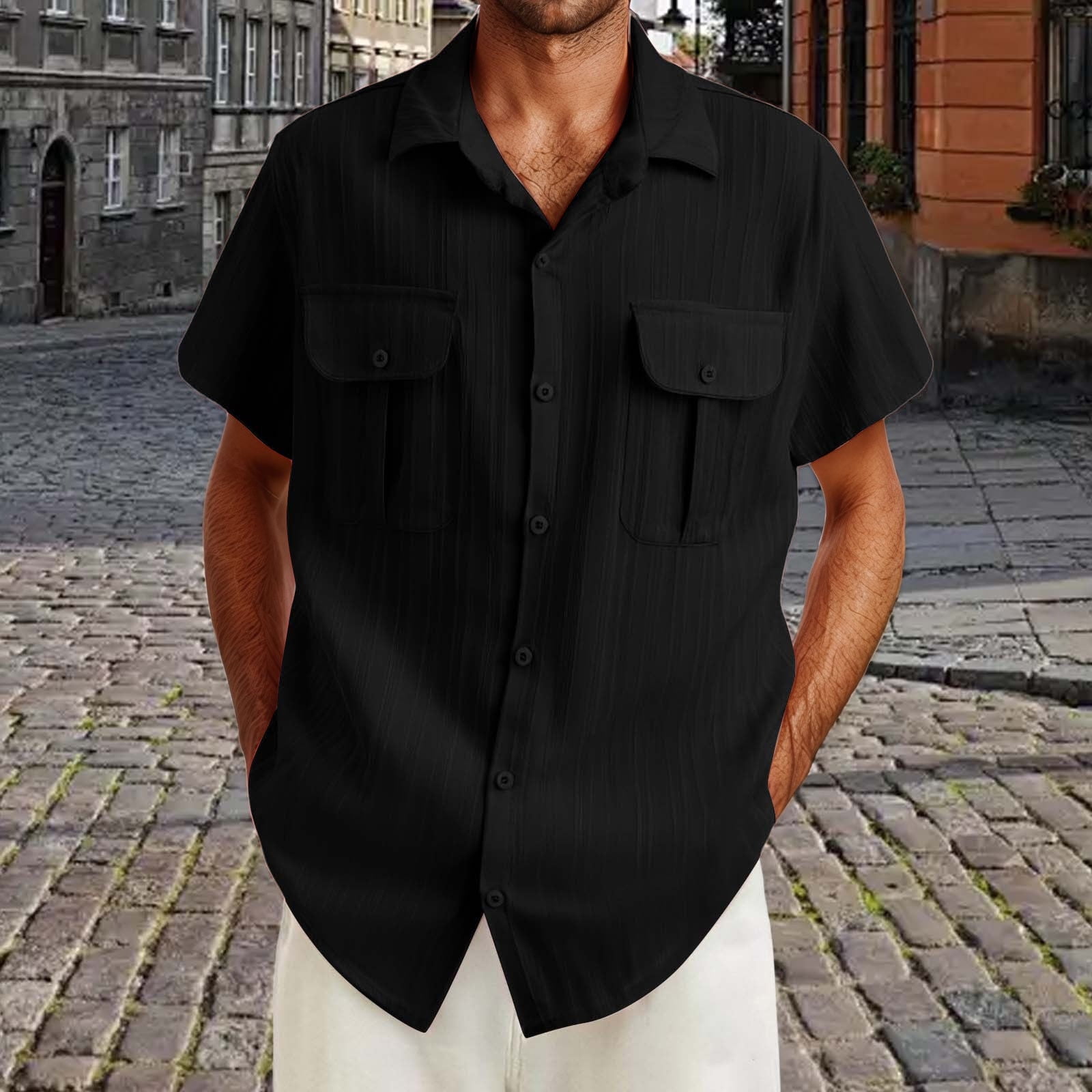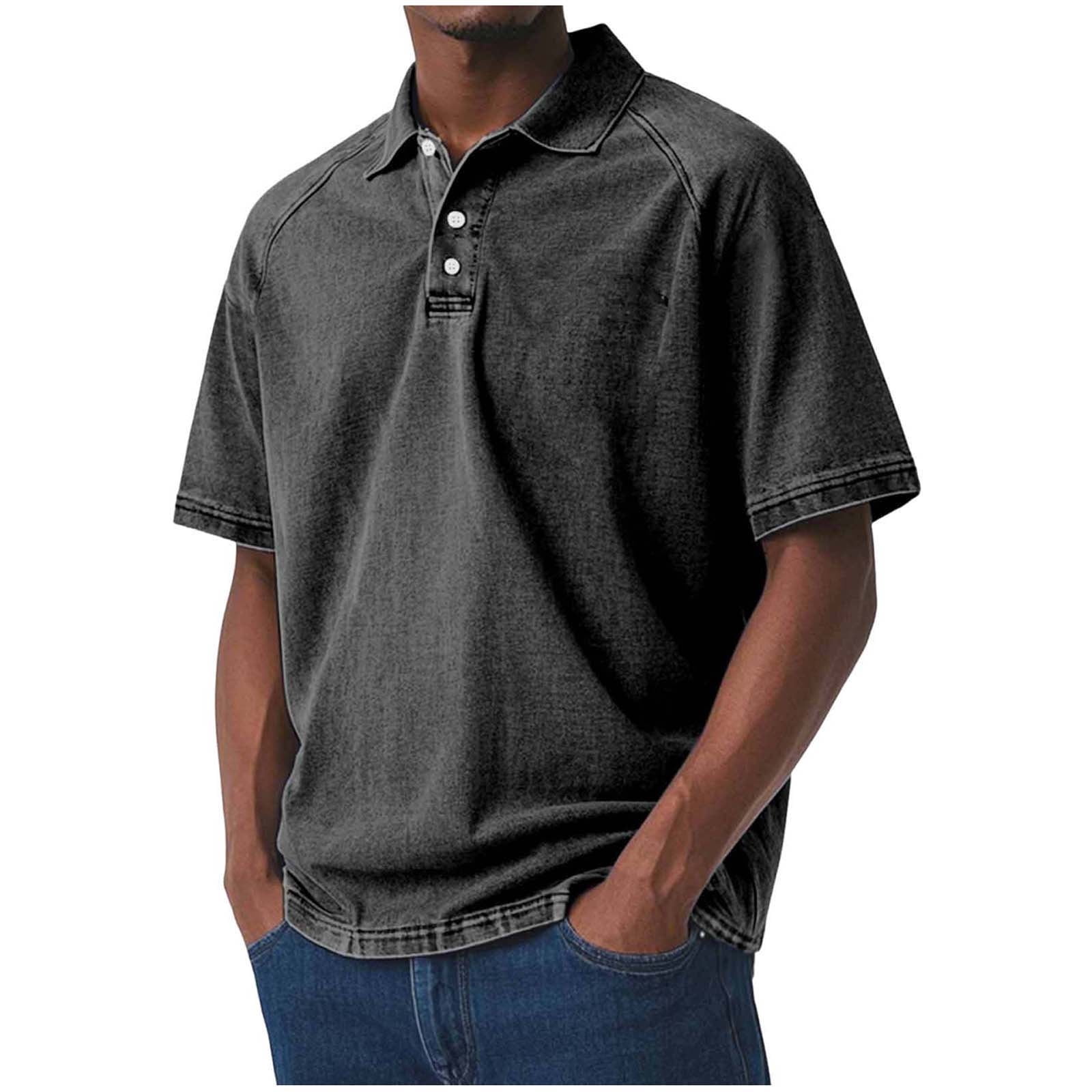 Chiccall Mens Casual Vintage Shirts Plus Size Short Sleeve Shirts Solid ...