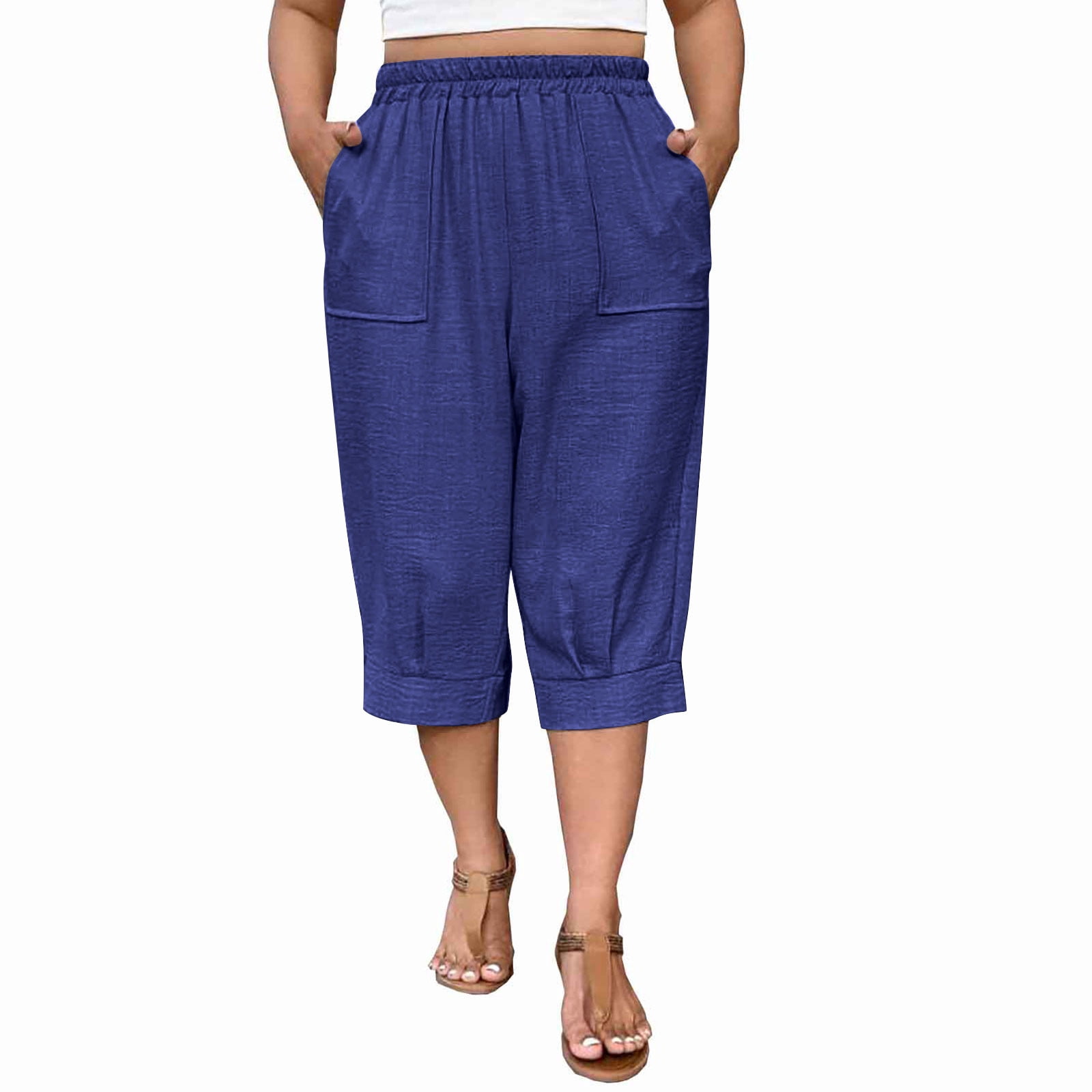 Capri Pants for Women Plus Size Wide Leg Casual Cropped Pants with ...