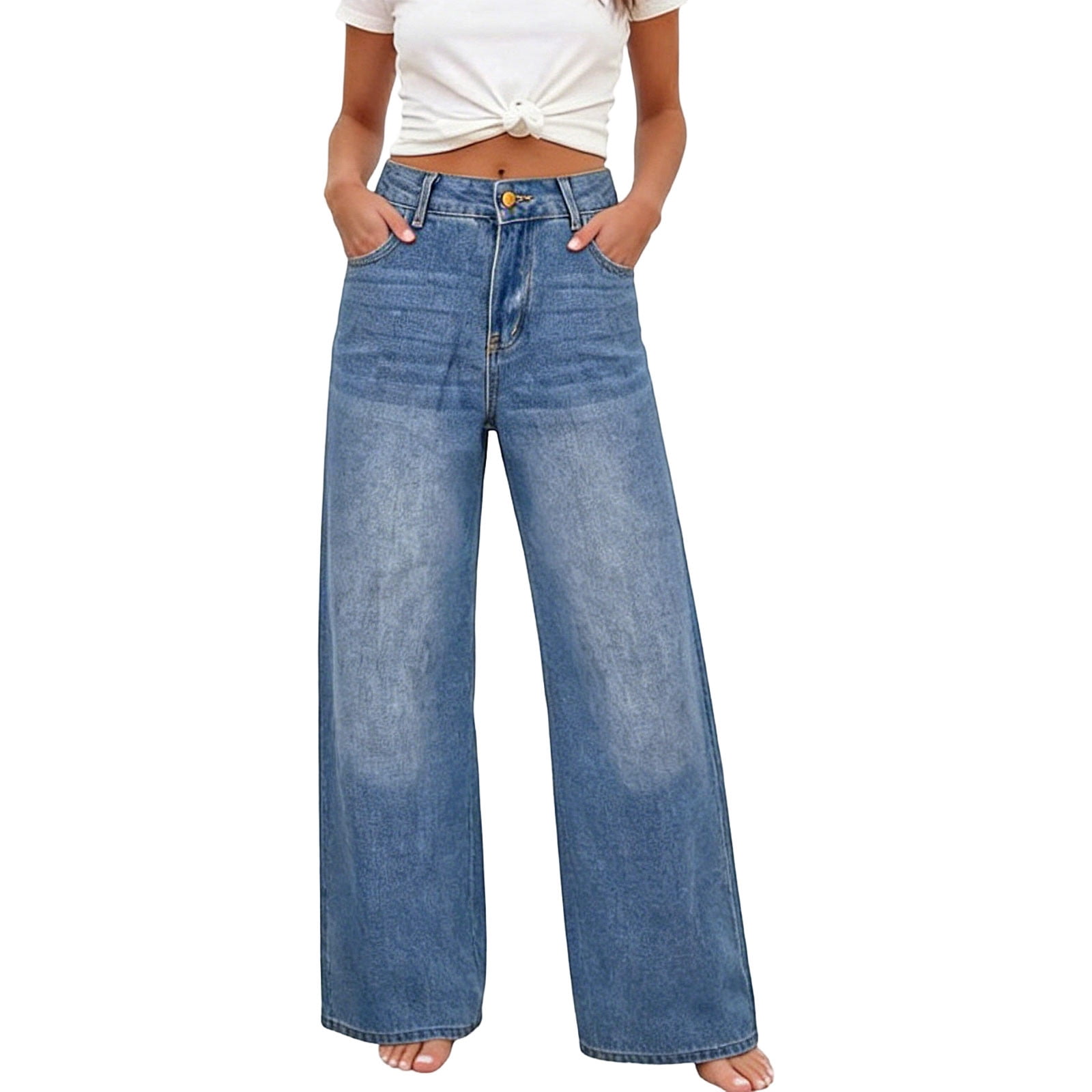 Cekizud Jeans for Women Wide Leg High Waisted Stretchy Straight Leg ...