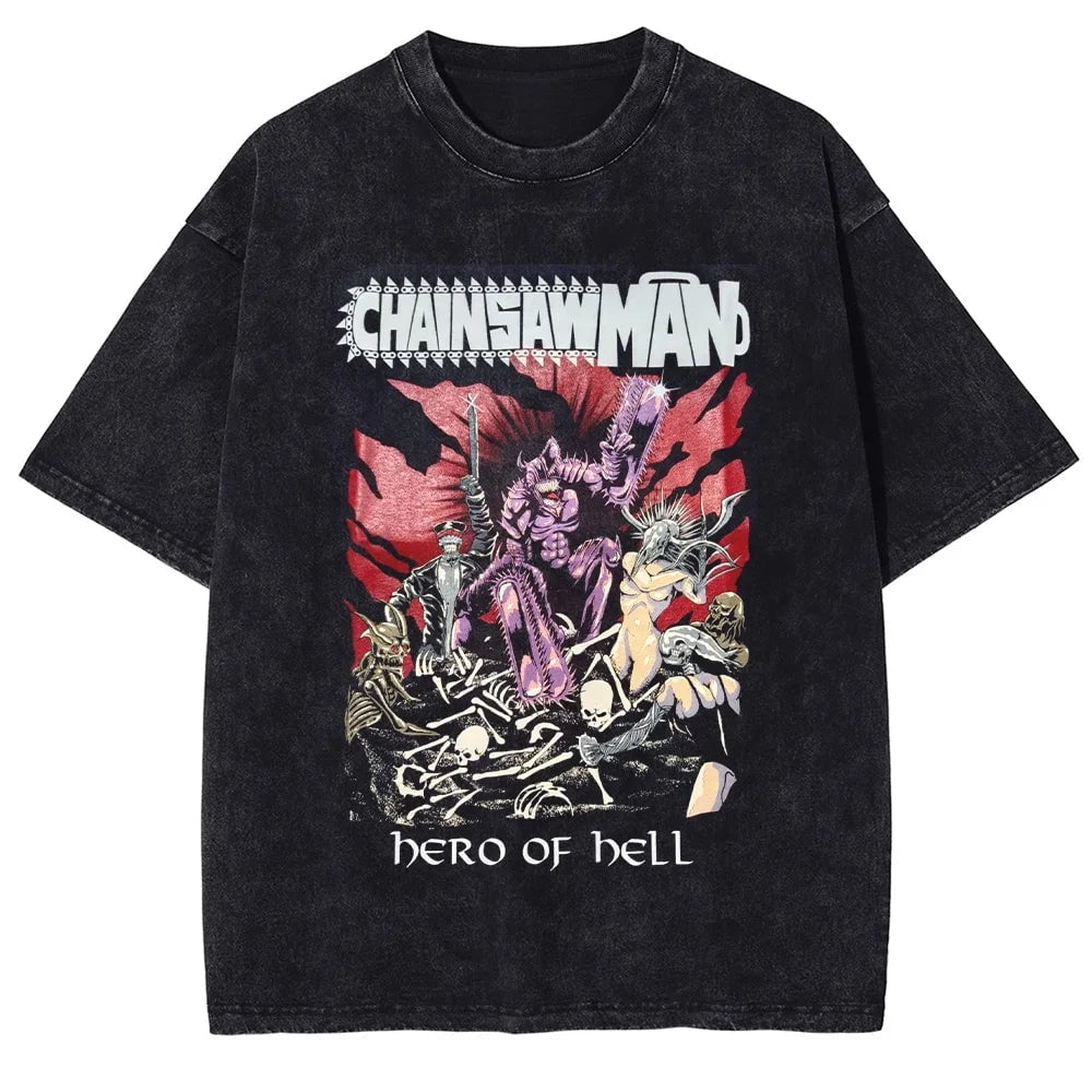 Chainsaw Man Hero of Hell Anime Graphic Acid Wash Vintage Oversized ...