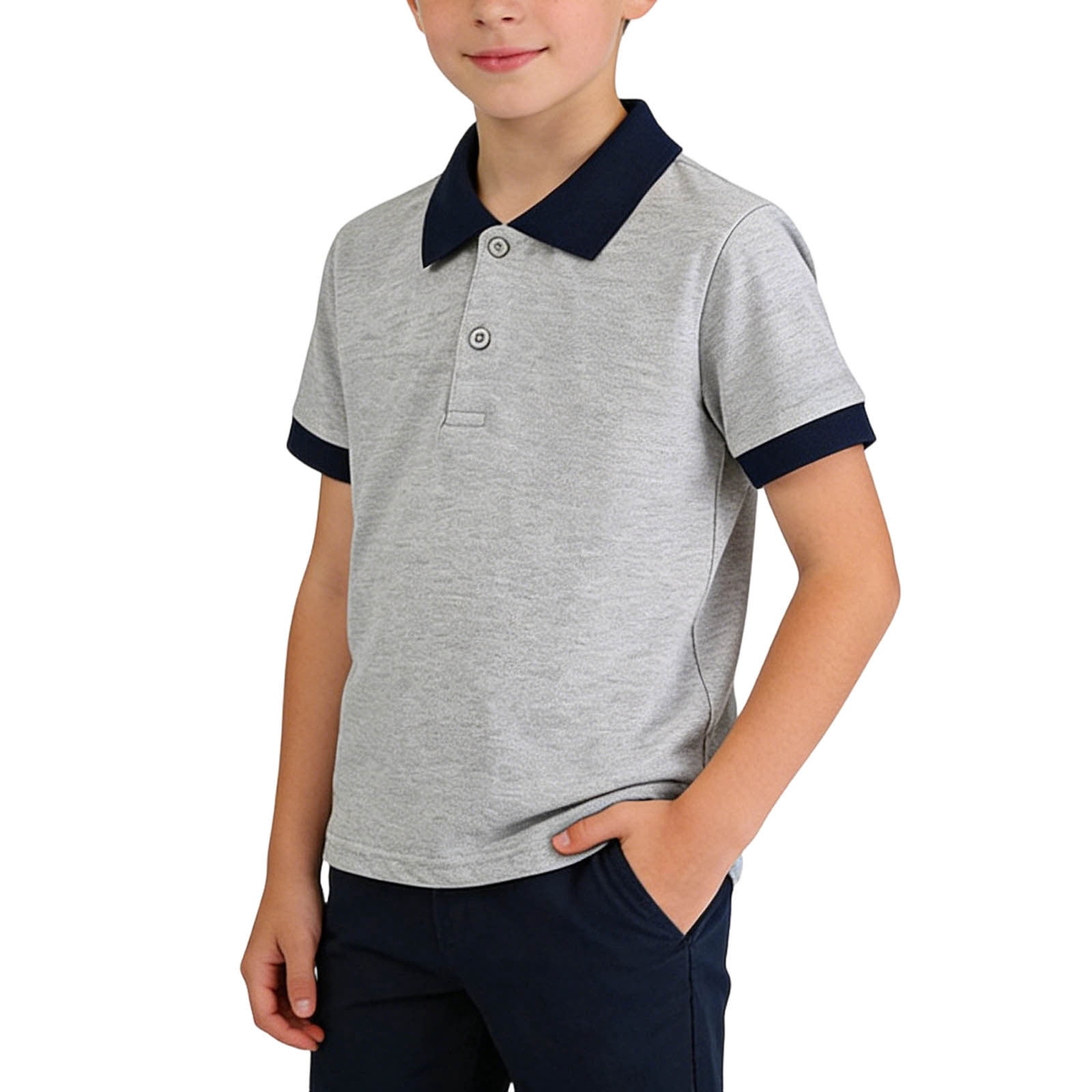 Djtdsds Boys' Short Sleeve Polo Shirt - White with Blue Trim Classic ...