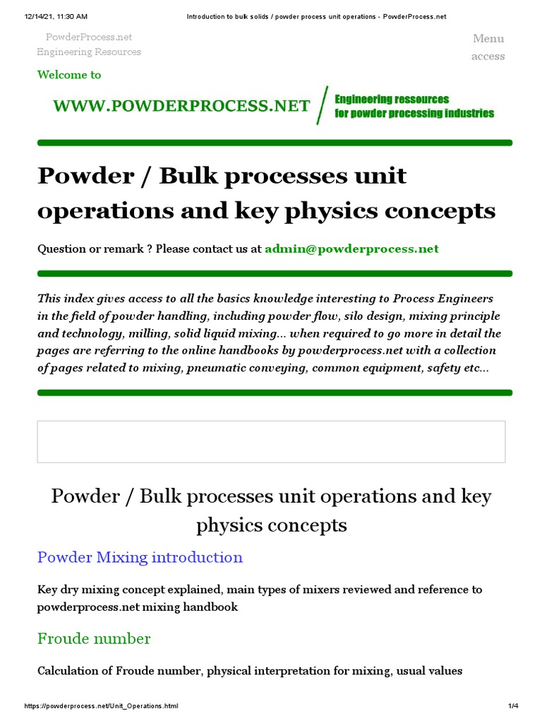 Introduction To Bulk Solids - Powder Process Unit Operations | PDF ...