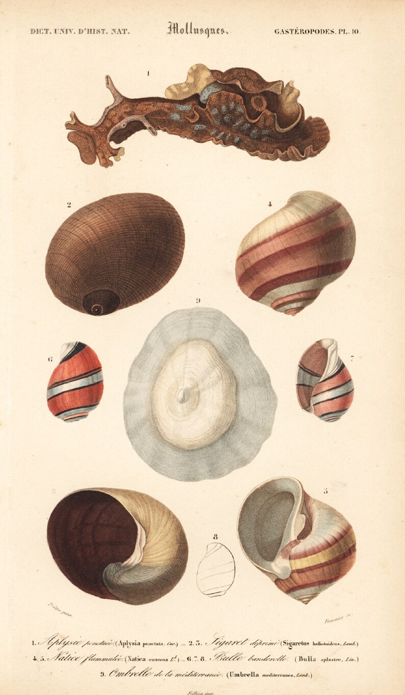 1861 Shells Bulla by Ch. Orbigny Original Antique Print | Etsy