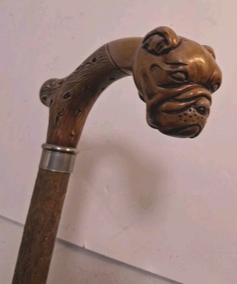 Vtg Bakelite? Bulldog Head Walking Stick Cane Shimmery Shellac Nicks ...