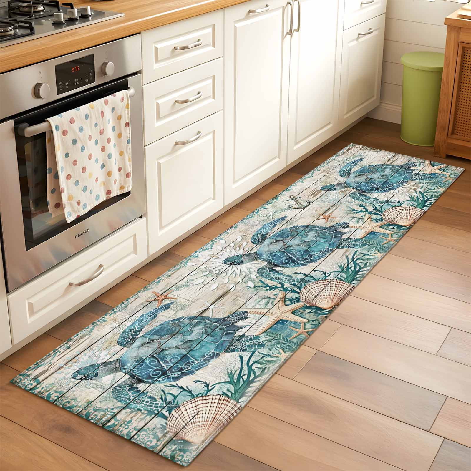 Area Rug 2x6ft Nautical Turtle Shell Starfish Washable Area Rugs for ...