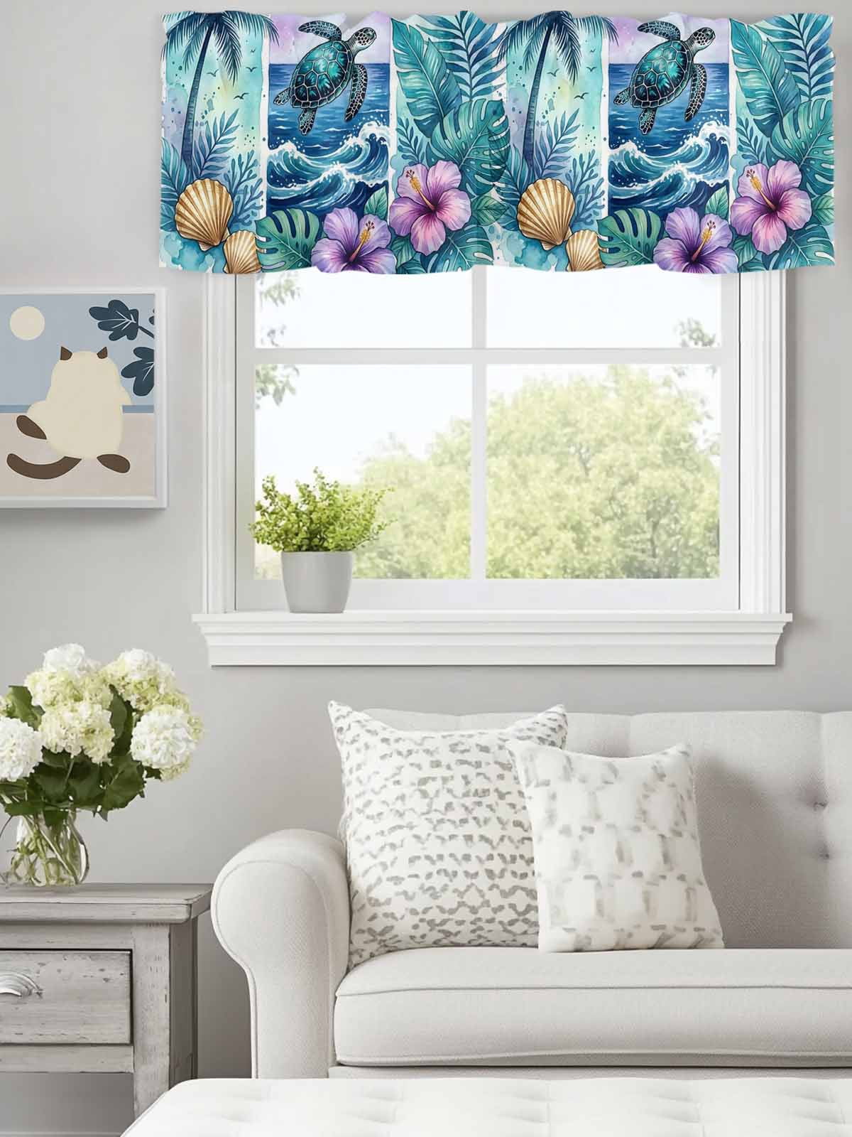 Curtain Valance for Windows, Watercolor Ocean Turtle Flower Kitchen ...