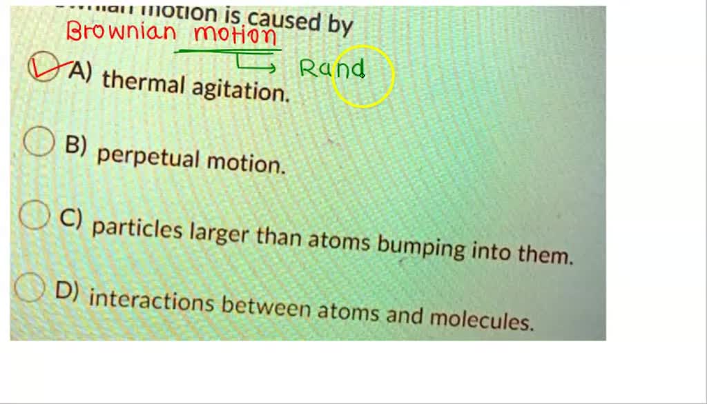 SOLVED: Brownian motion is caused by A) thermal agitation. B) perpetual ...