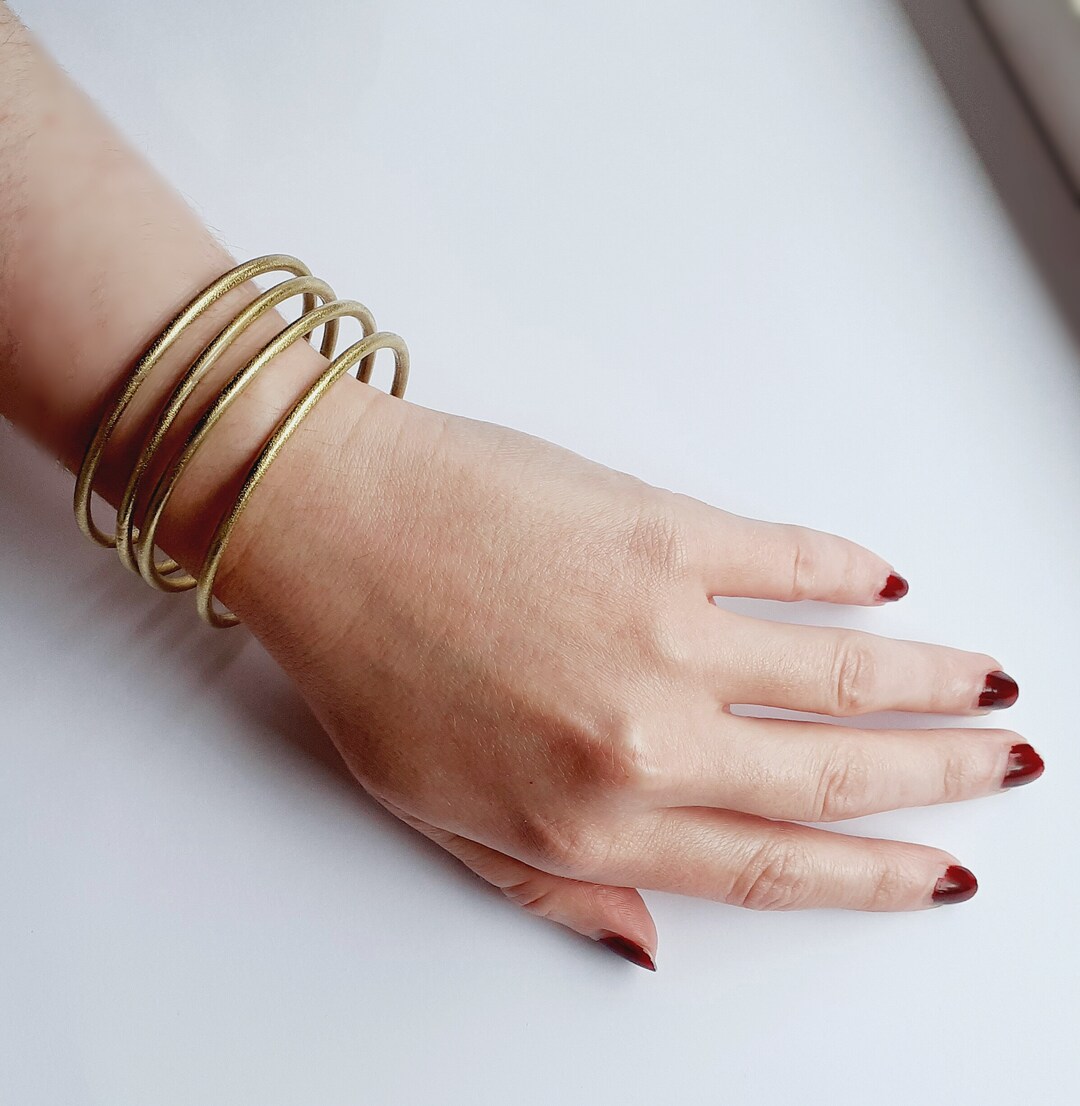 Brass Stacking Bangles, Satin Texture, Hand-crafted, Minimal, Rustic ...