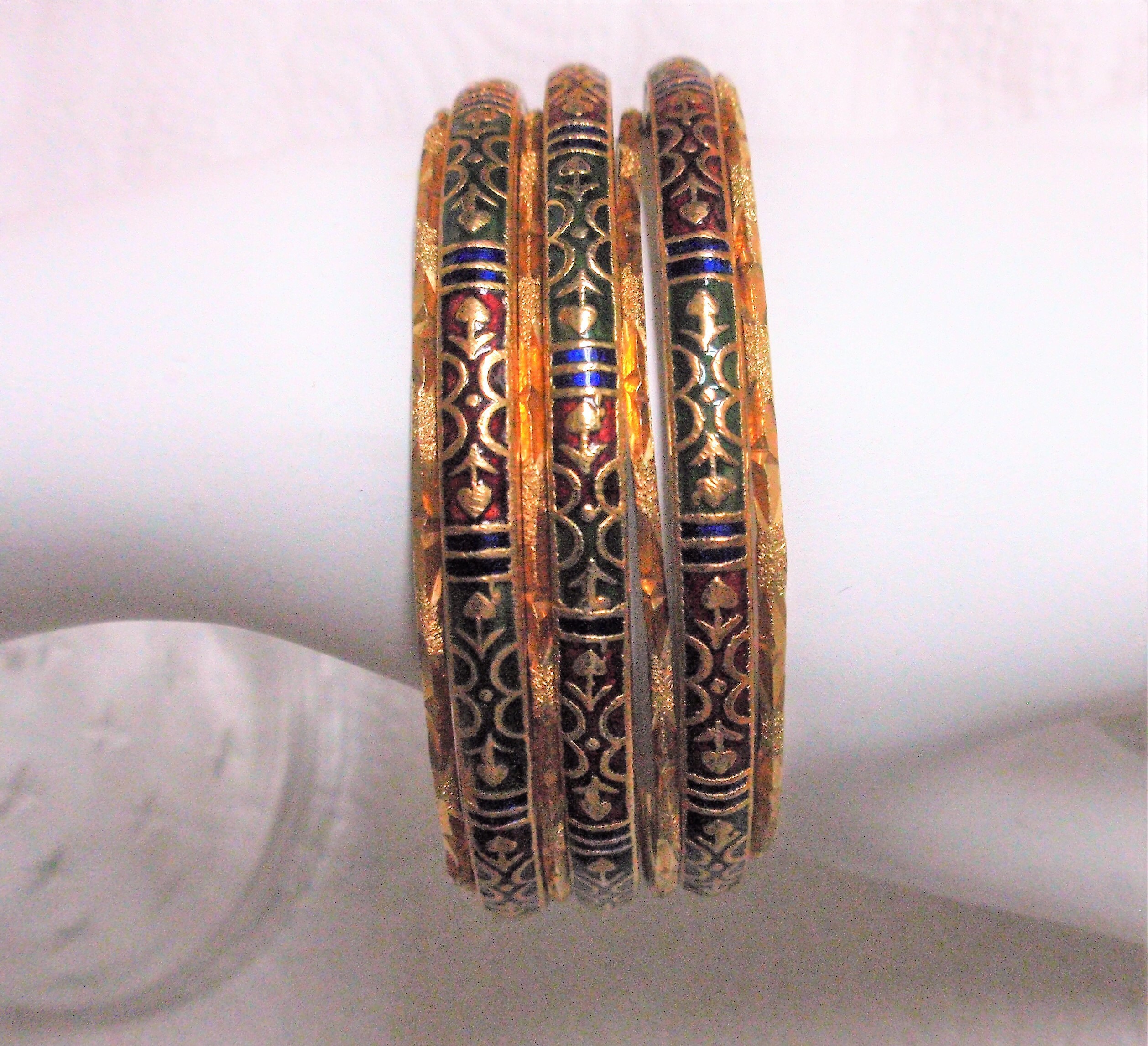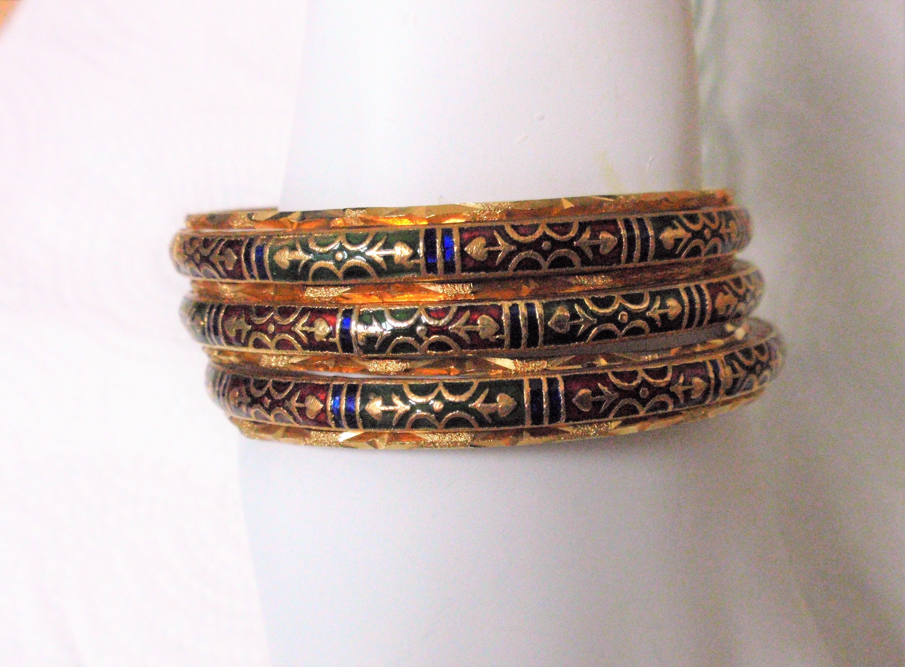 Vintage textured stacking Bangles enamel/ Brass 7 piece set | Etsy