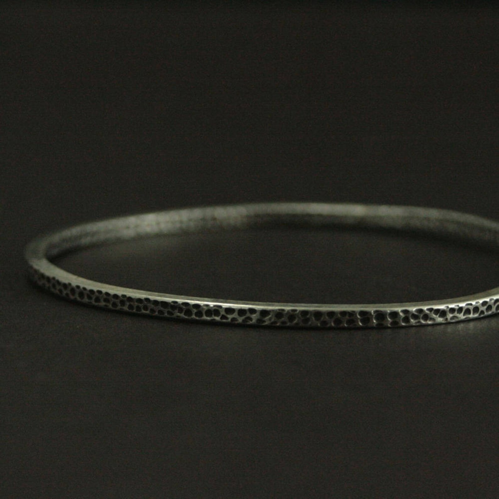 Sterling silver round bangle with oxidized hammered texture(M)