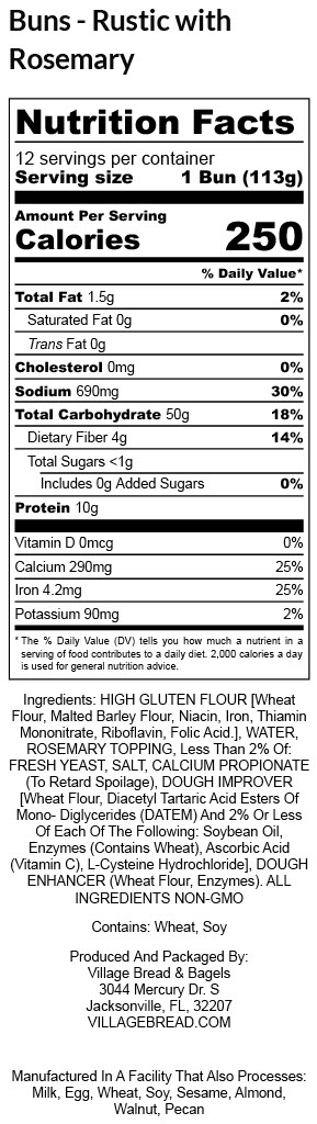 4 12 Hamburger Bun Plain – 90500 Nutrition Label – Giulianos Bakery