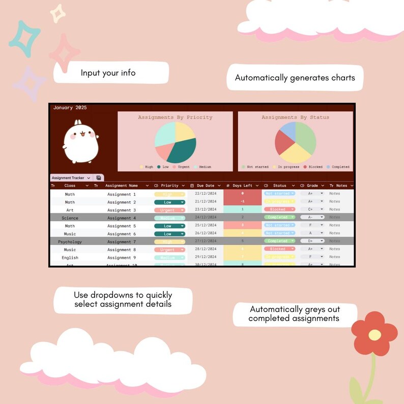 Assignment Tracker Spreadsheet Google Sheets Template - for College and ...