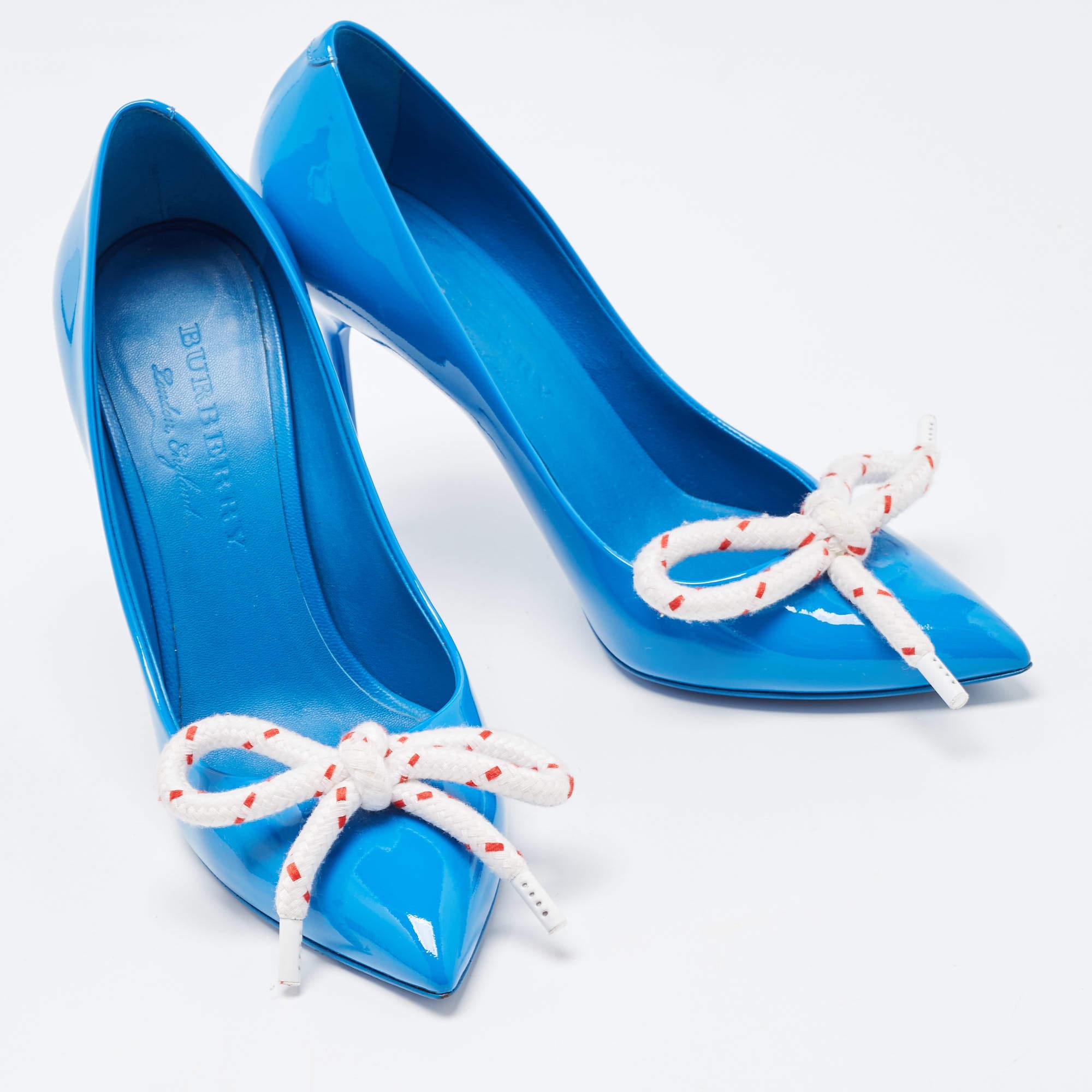 Burberry Blue Patent Leather Finsbury Pumps Size 38.5 For Sale at 1stDibs