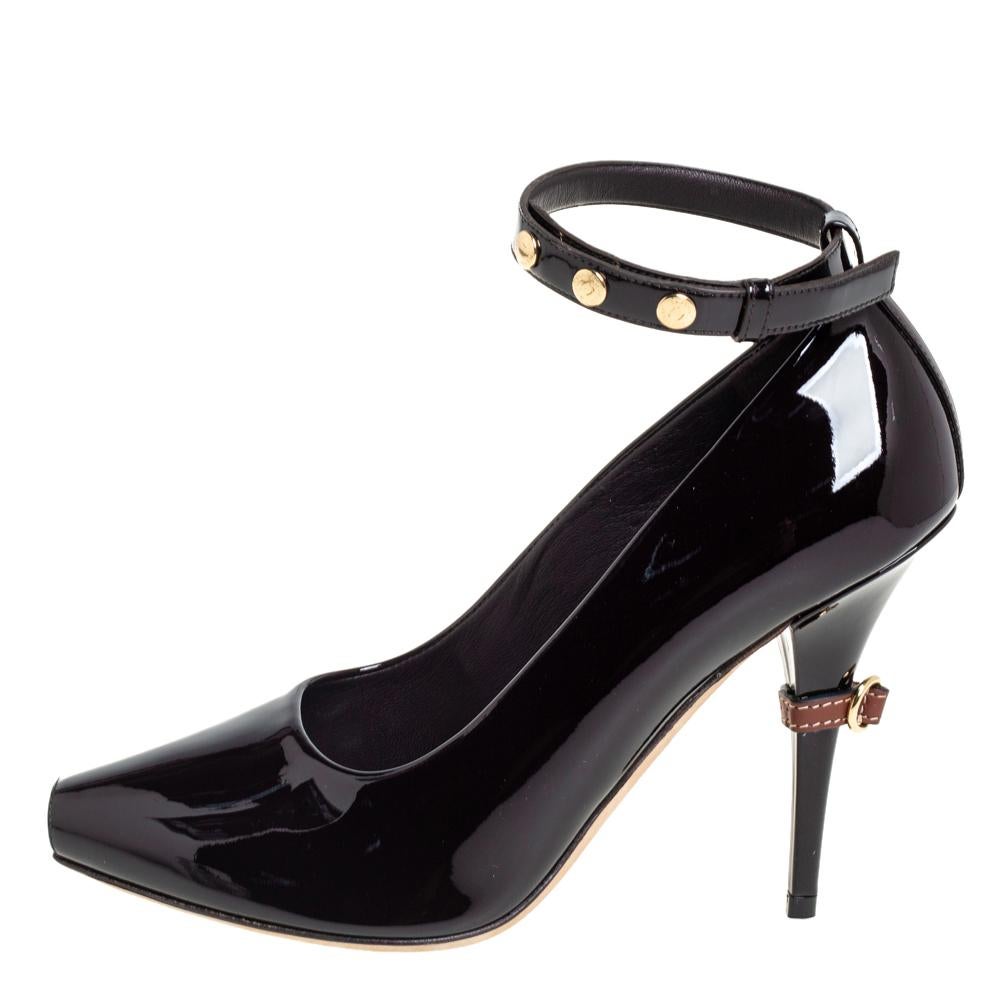 Burberry Dark Brown Patent Leather Jermyn Peep Toe Ankle Cuff Pumps ...