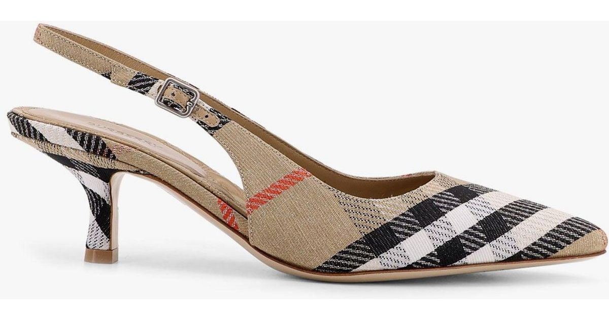 Check Dame Slingback Pumps in Sand - Women, Linen | Burberry® Official
