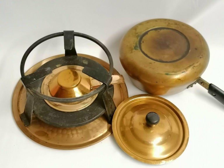 French Villedieu Set of Antique Retro Copper Fondue Set with Burner ...