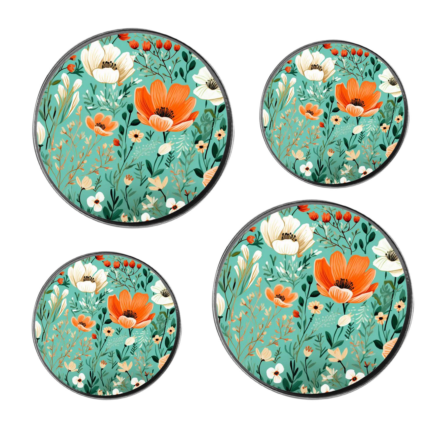 Spring Pink Floral Green Elegant Pattern Stove Burner Covers Set,Gas ...
