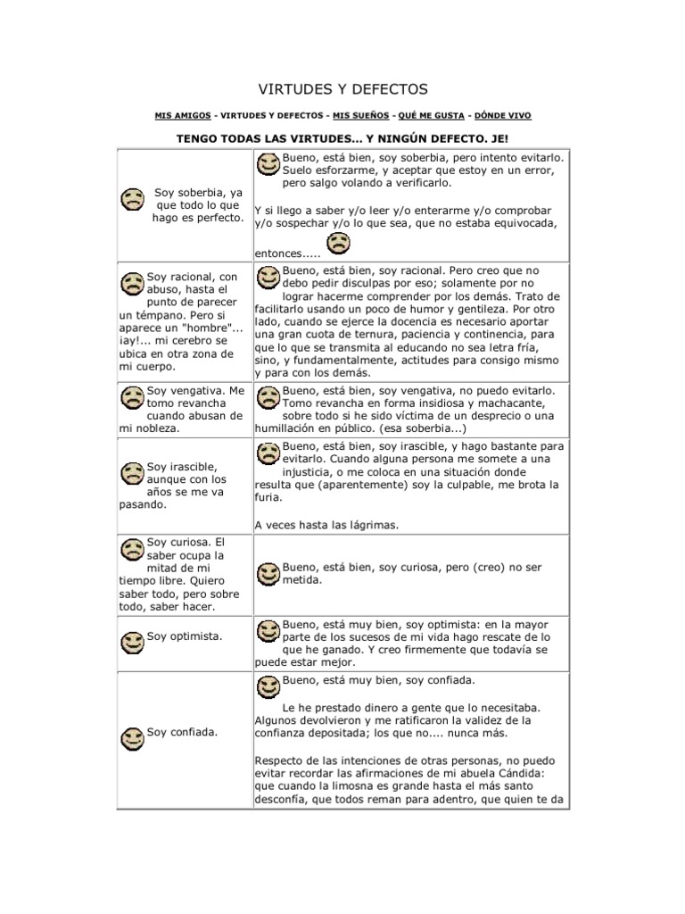 ¿SABES CUÁLES SON TUS DEFECTOS Y VIRTUDES?