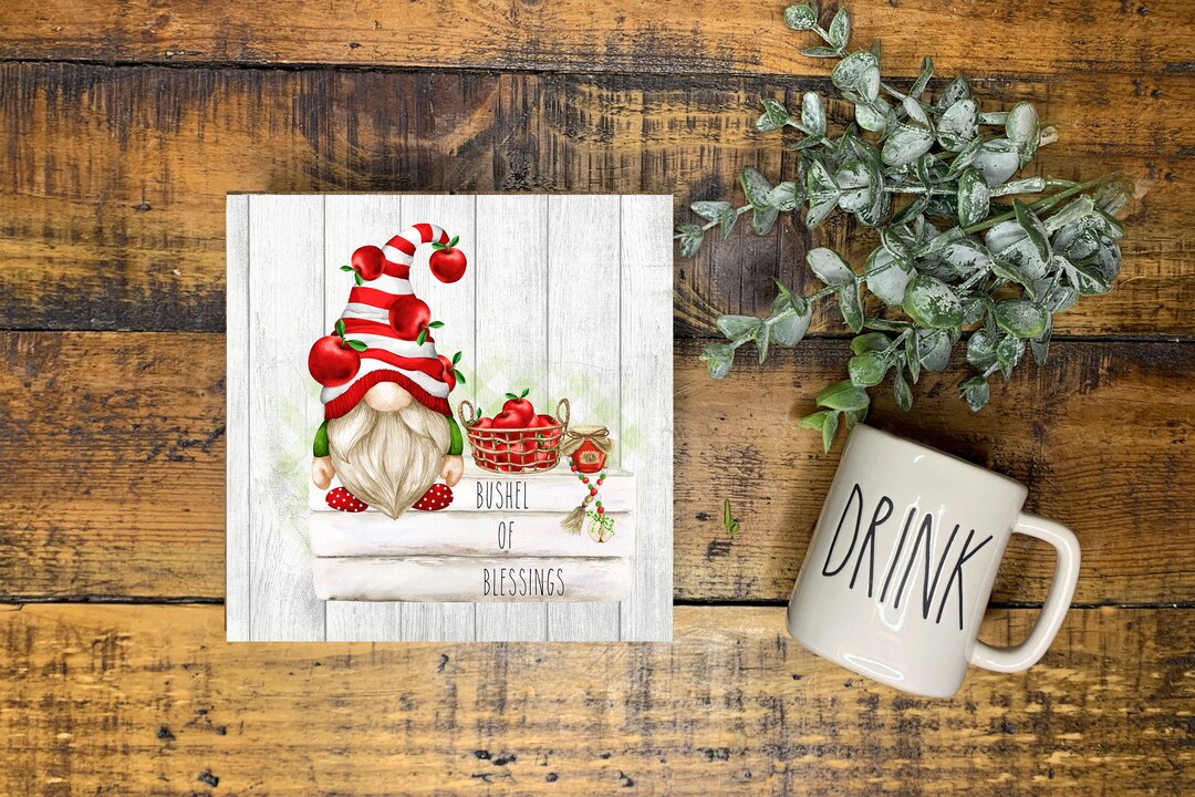 Bushell of Blessings Apple Gnomes Printed Handmade Wood Mini Sign - Etsy