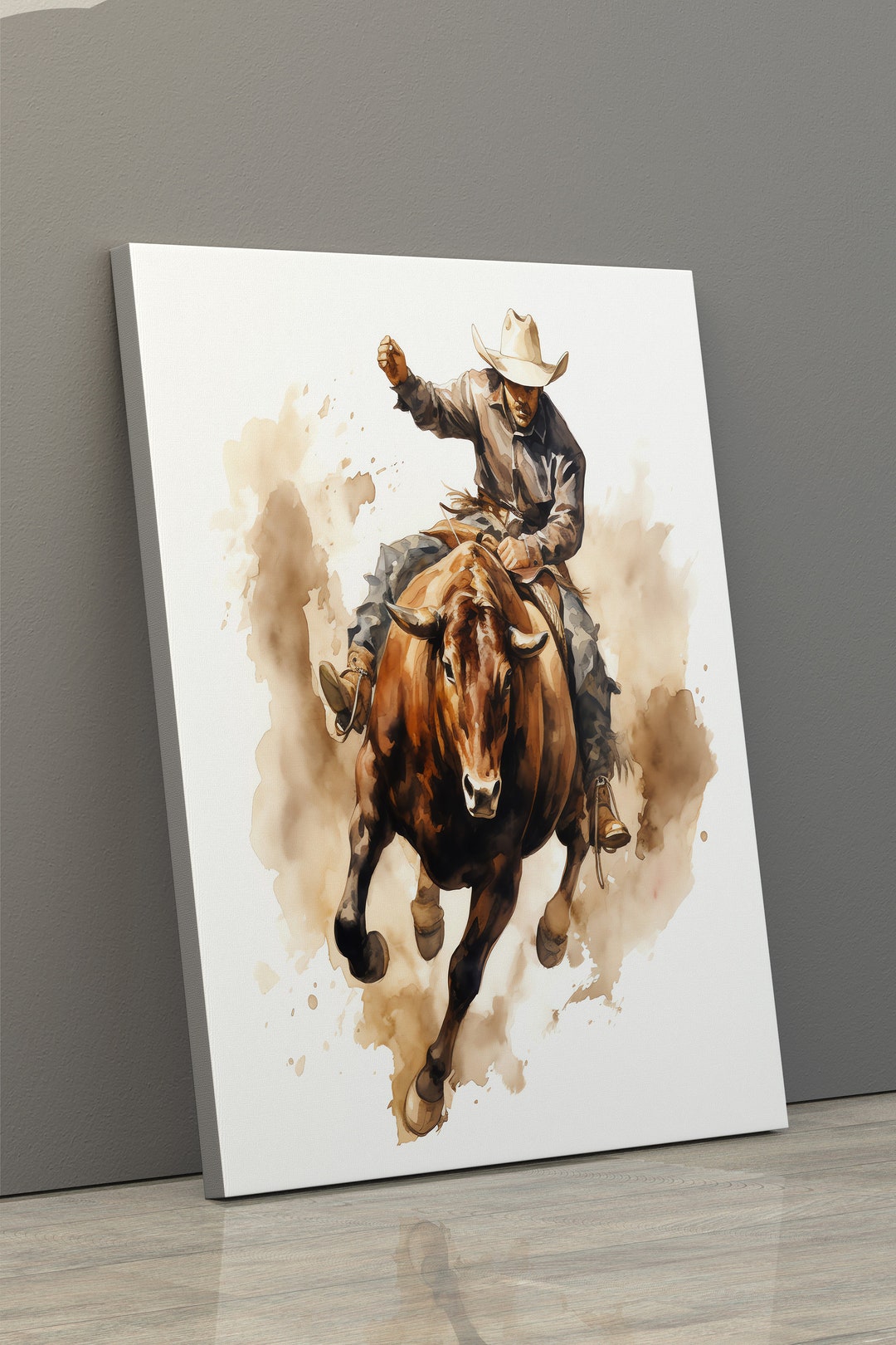 Bucking Bronco Canvas, Bucking Bronco Watercoloor Painting, Western ...