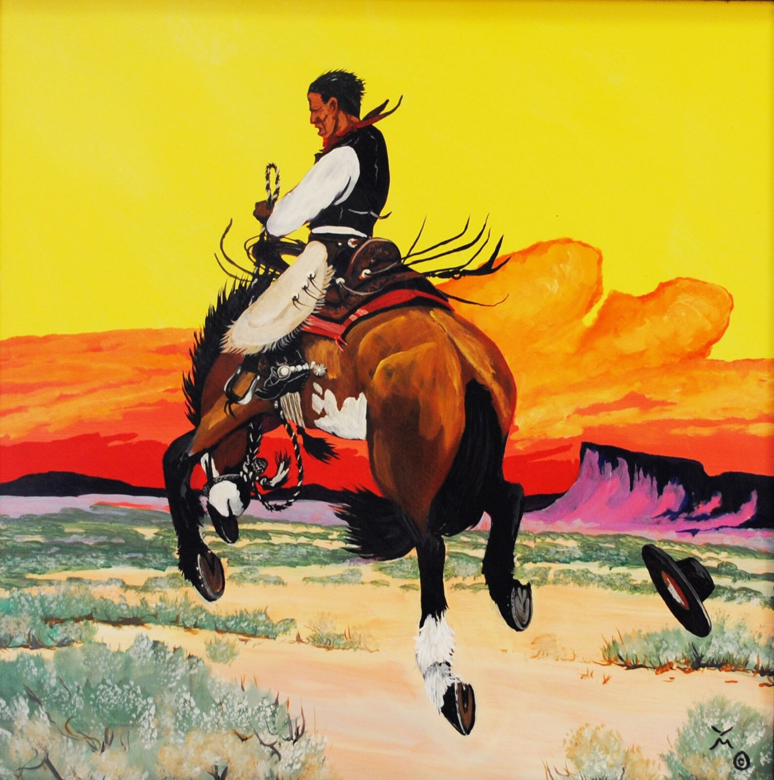 Art & Collectibles :: Painting :: Cowboy on Bucking Horse Original ...