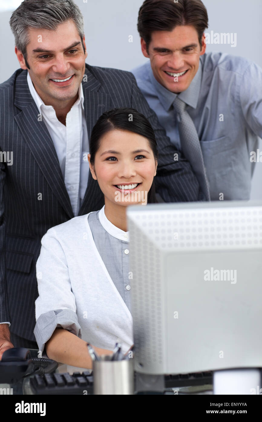 Positive business partners working at a computer Stock Photo - Alamy