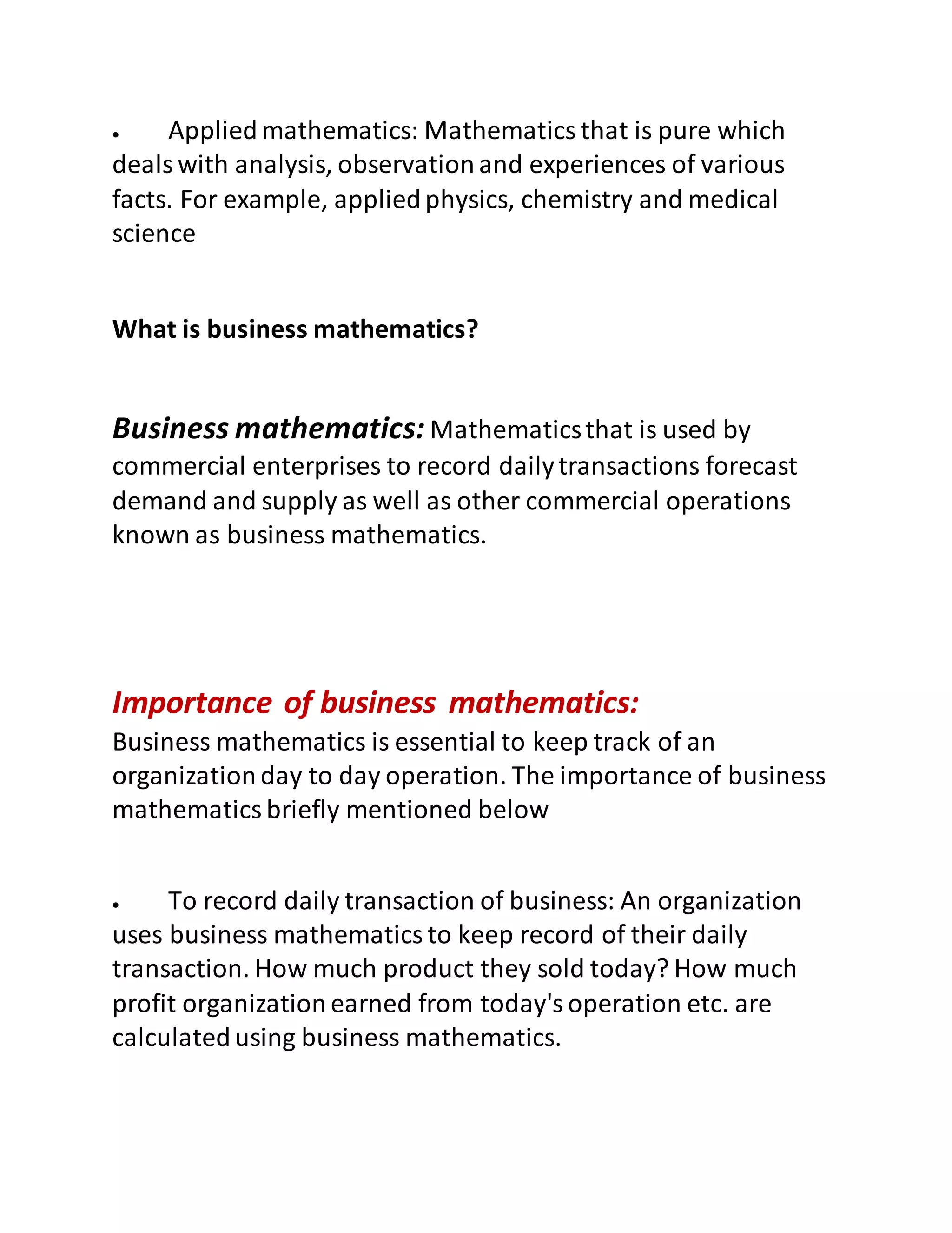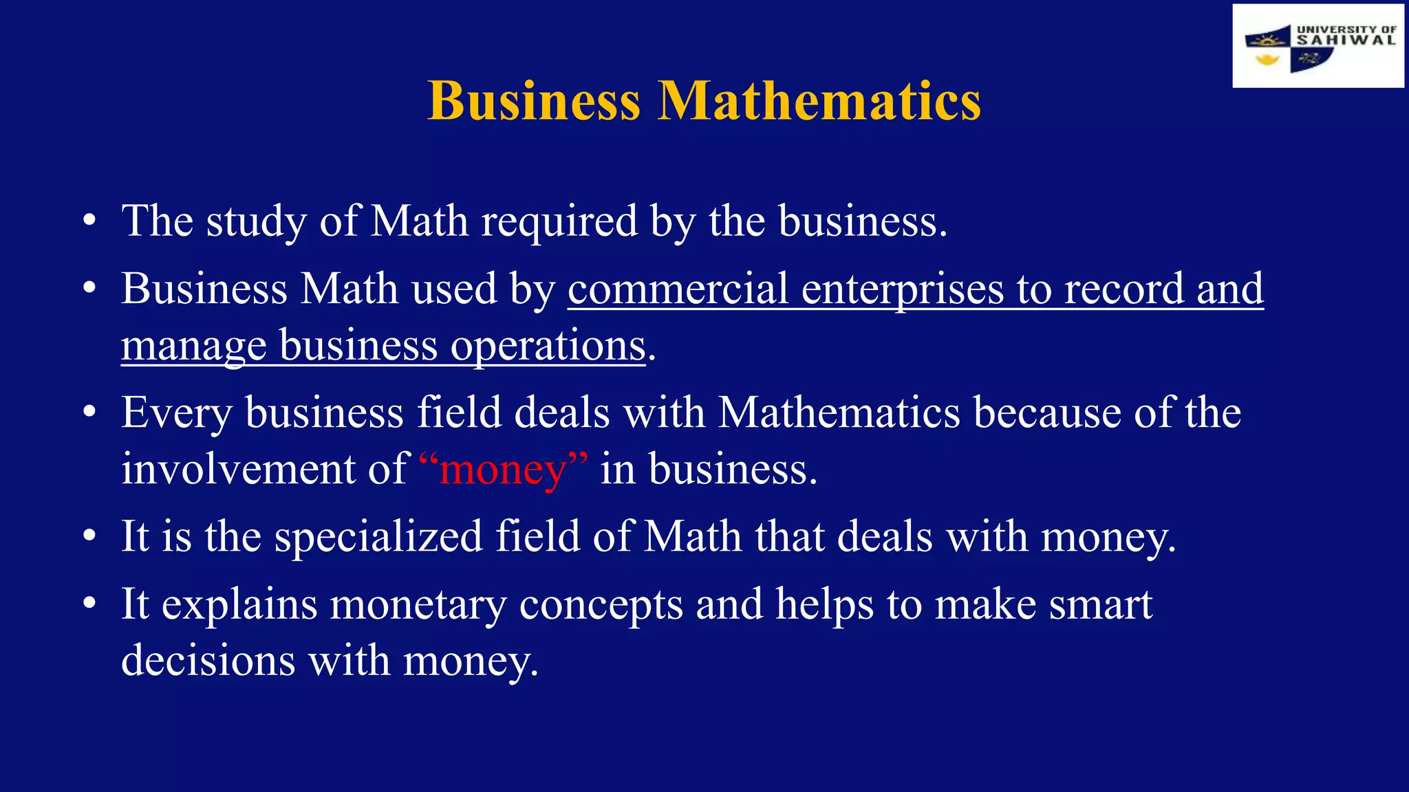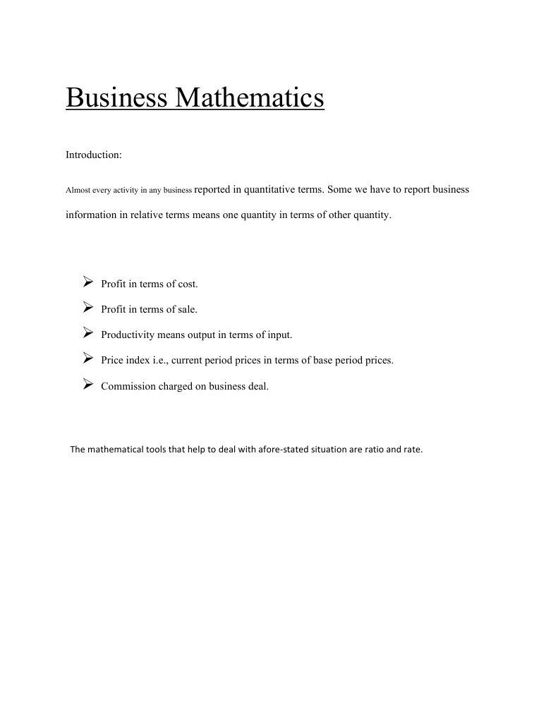 Business matematics - It involves the application of mathematical ...