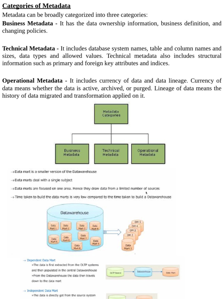 What is meant by metadata in the context of a Data warehouse? Explain ...