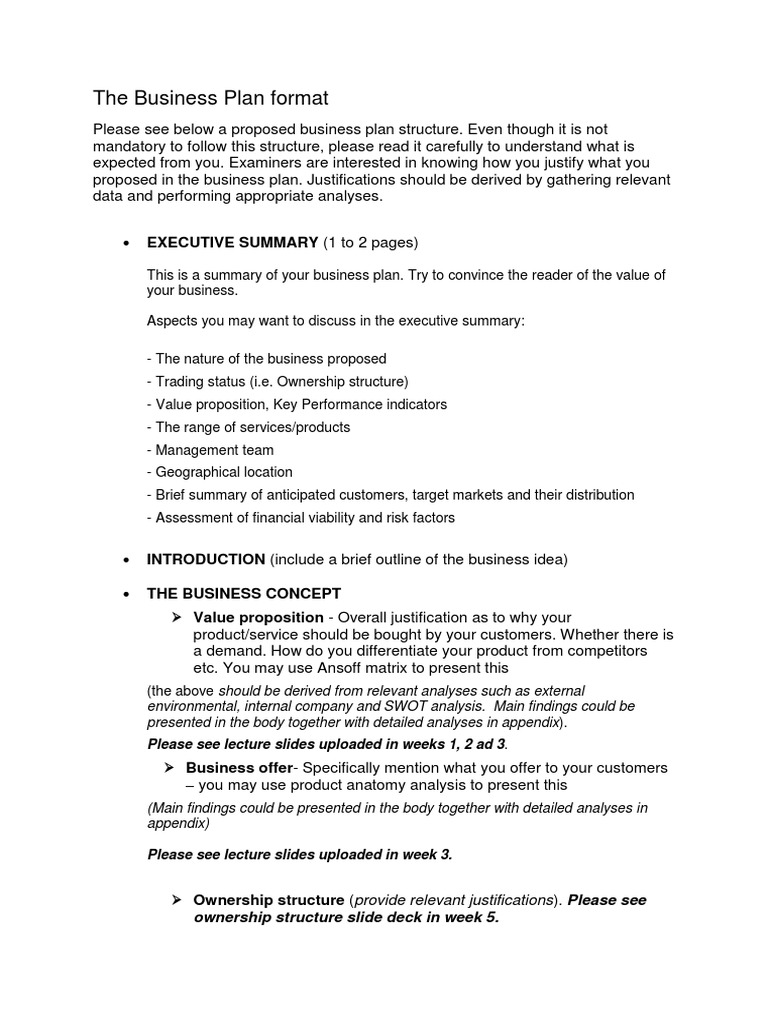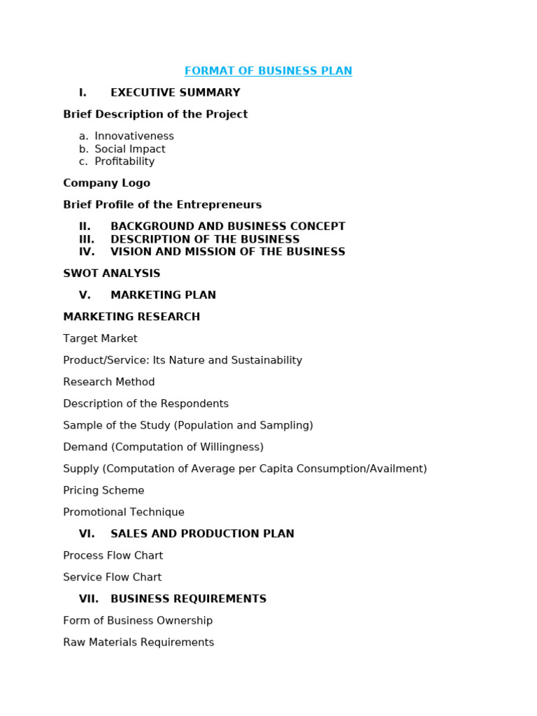 Business Plan Format | PDF | Business | Business Economics