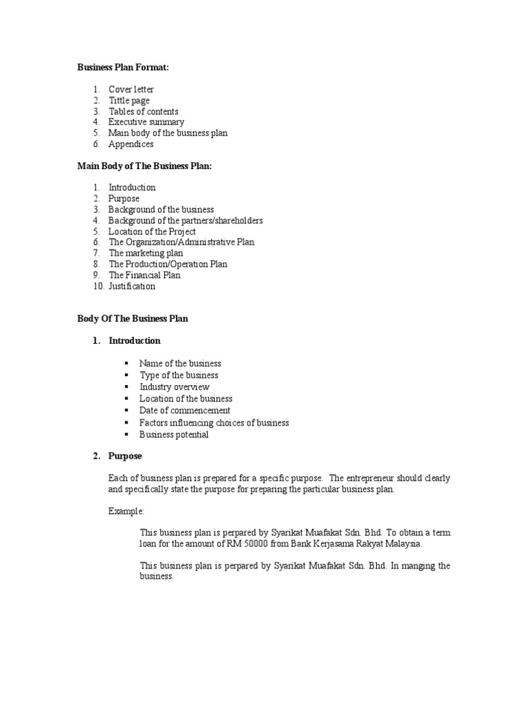 Business Plan Format Template