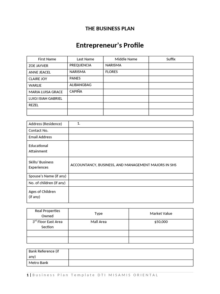 BUSINESS-PLAN-FORMAT Entrep | PDF
