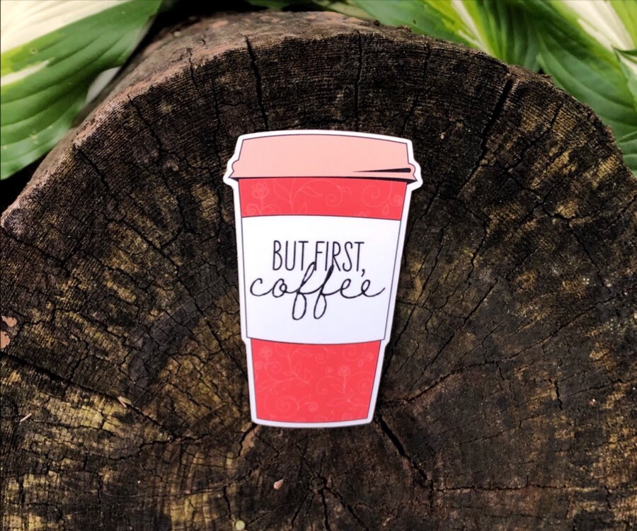 Coffee Sticker Die Cut Sticker but First Coffee Sticker - Etsy