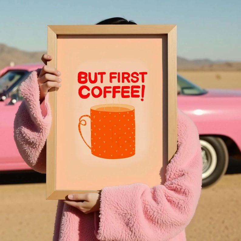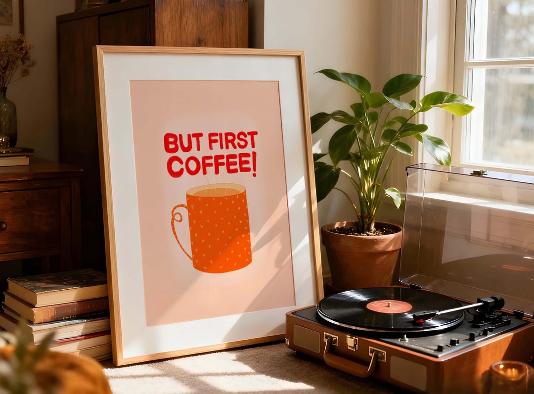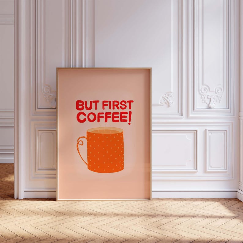 But First Coffee Printable Poster, Retro Orange Groovy Print, Eclectic ...