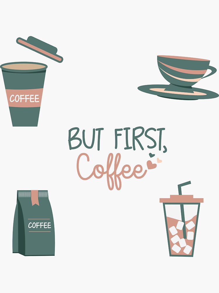 'But First Coffee' Sticker by LeslieMC0613 | Redbubble
